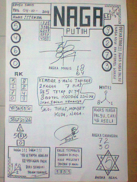Bongkar Togel Prediksi Naga Putih Edisi Kamis 04 Oktober 2012